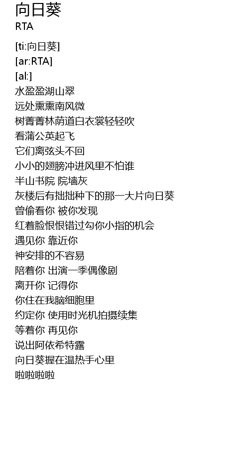 | [00:57.97] | 灰楼后有拙拙种下的那一大片向日葵 |