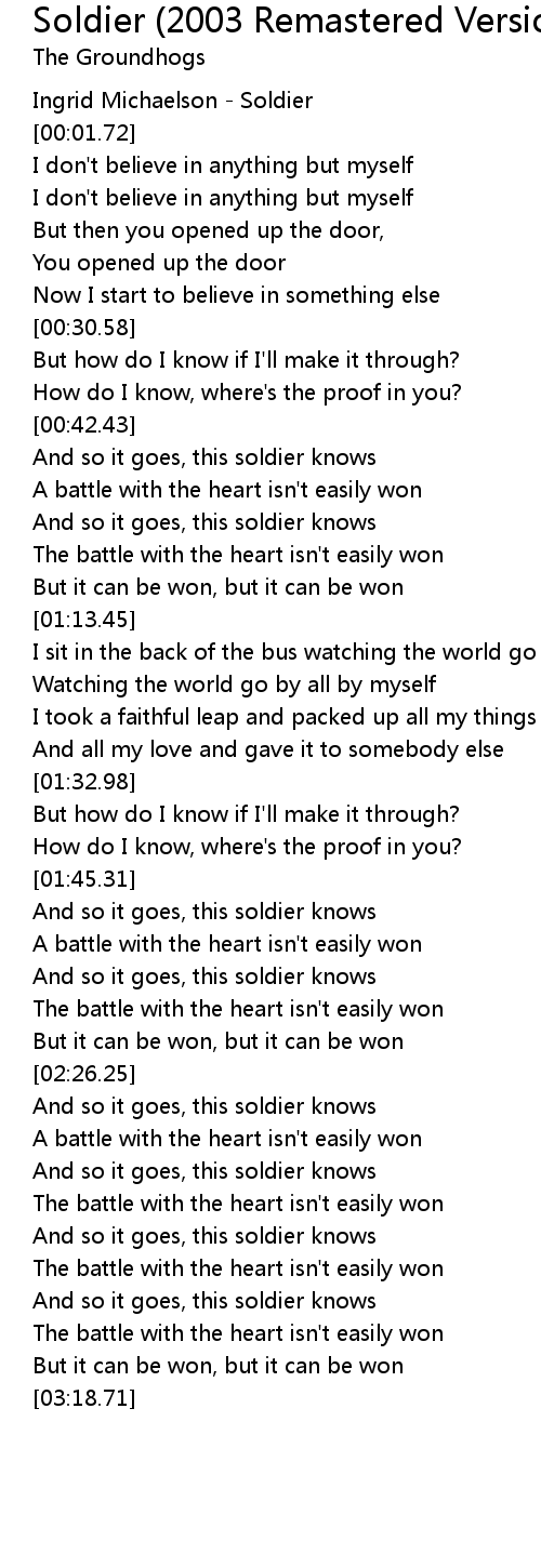 And so it goes, this soldier knows |
