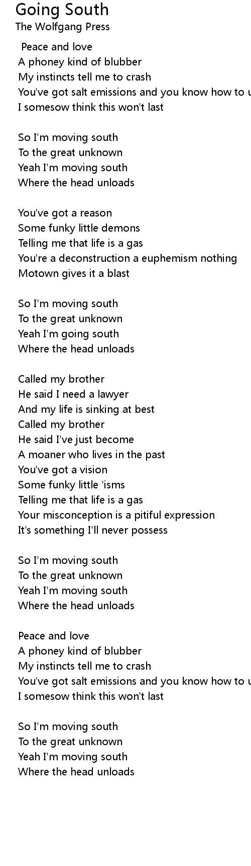 Yeah I'm moving south |