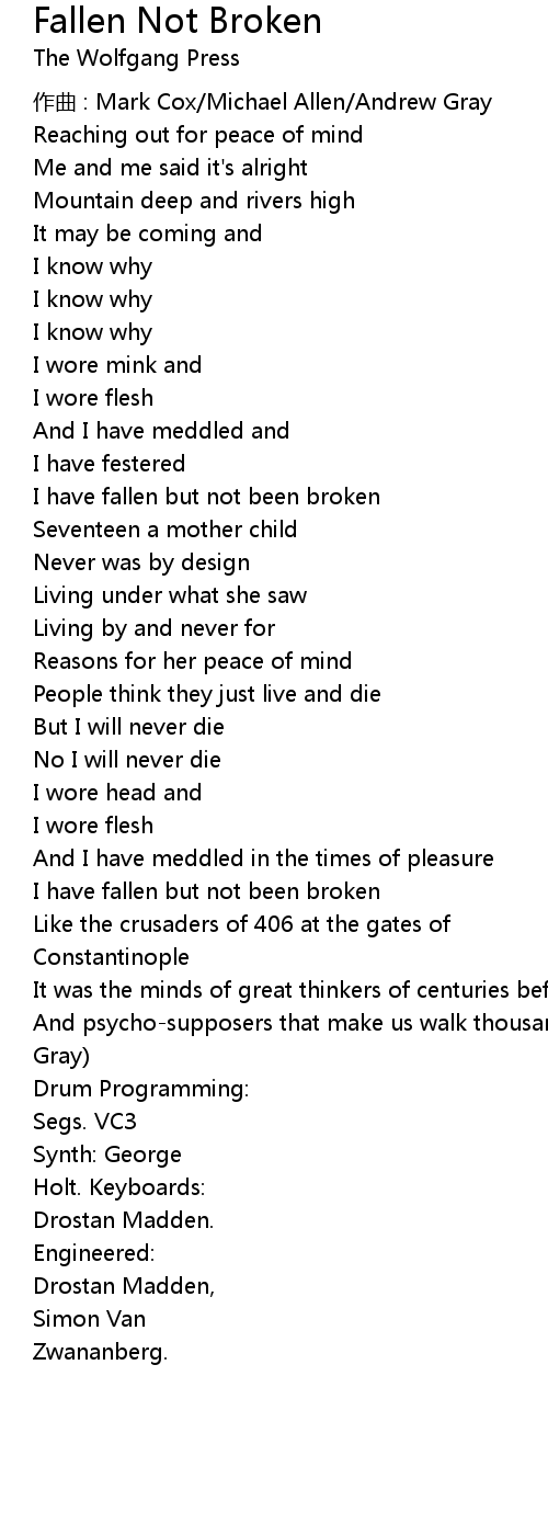 | I have fallen but not been broken | |