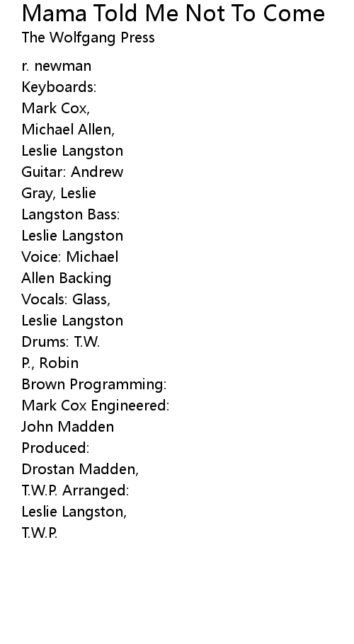 | Song | Mama Told Me Not To Come |