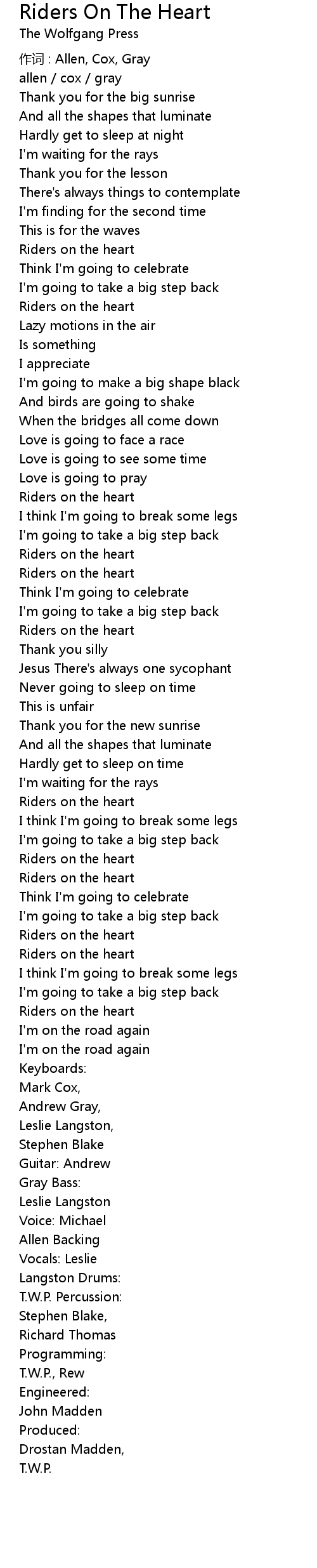 | 作词 : Allen, Cox, Gray | |