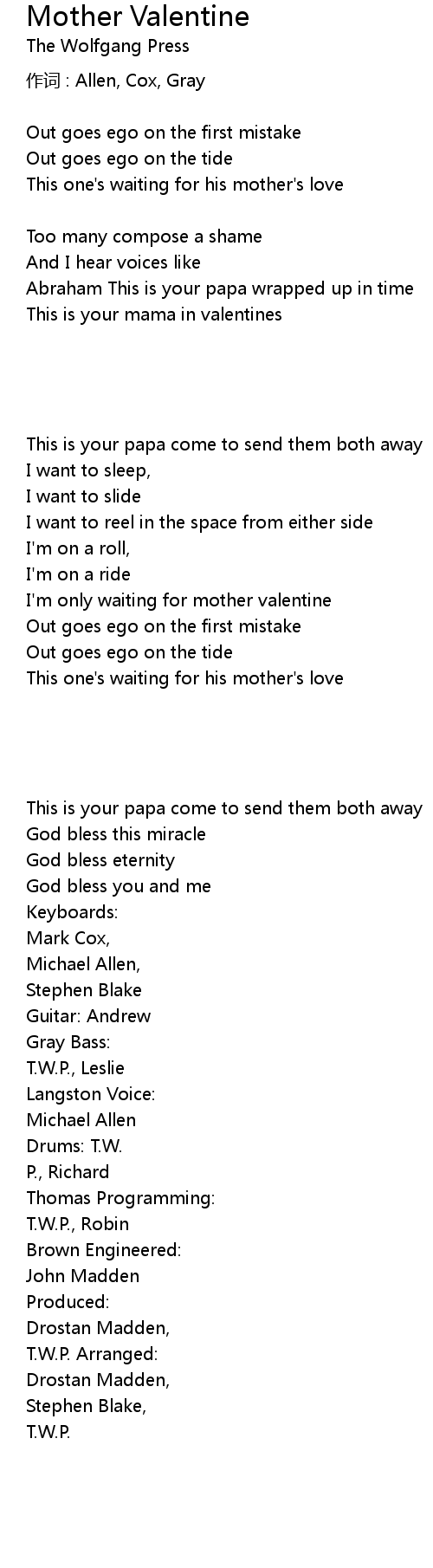 | I' m only waiting for mother valentine | |