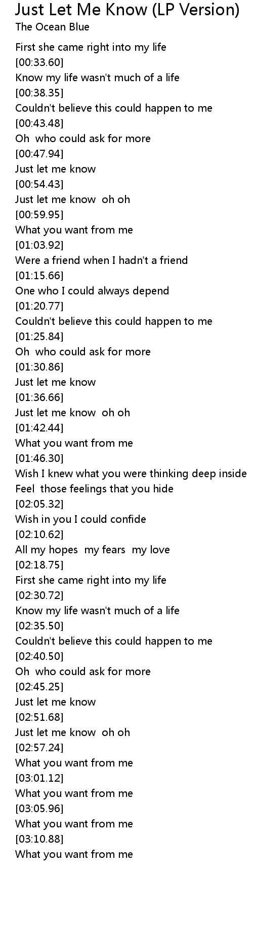 Just let me know oh oh |