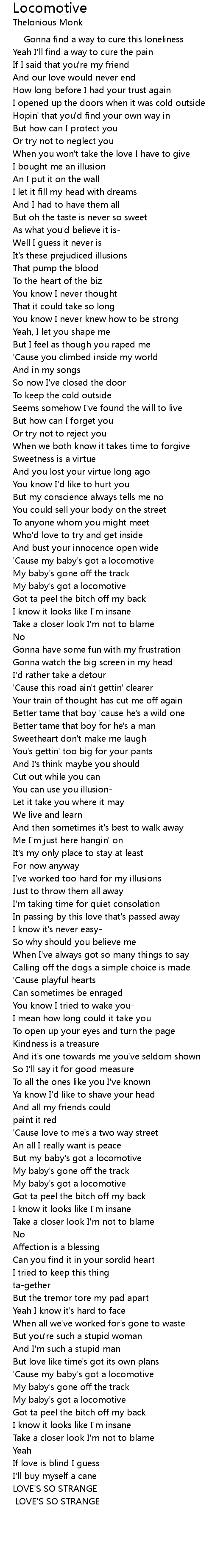 | ' Cause my baby' s got a locomotive | |