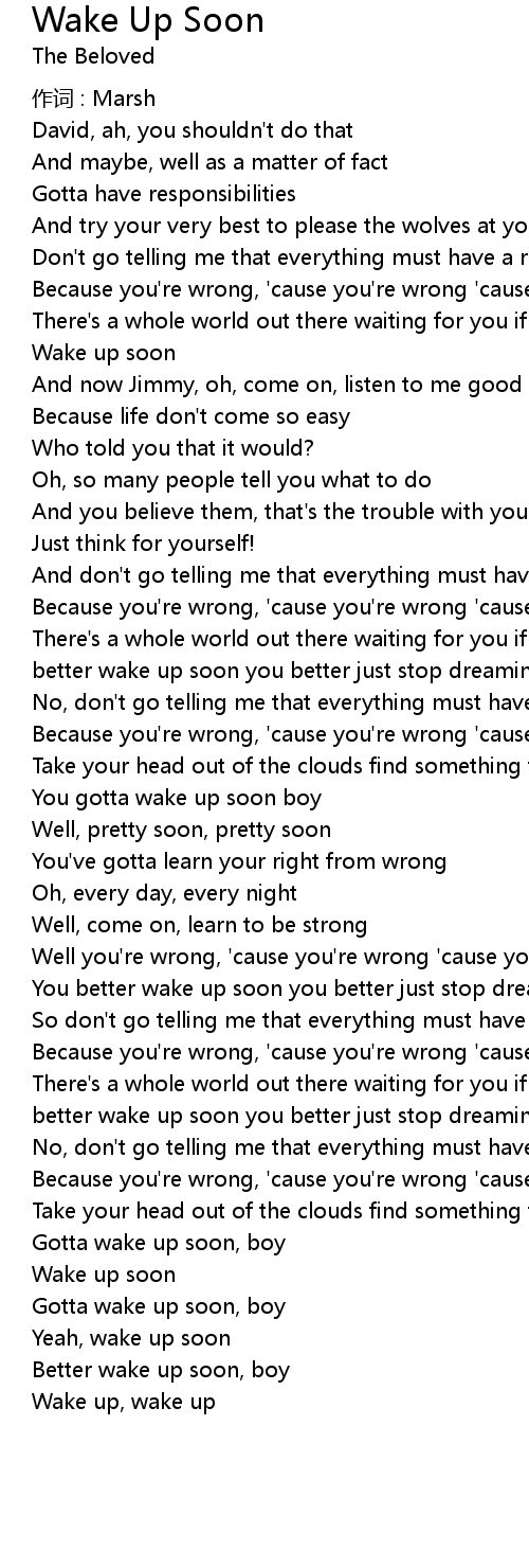 | There' s a whole world out there waiting for you if you' ll just stop dreaming you better wake up soon you better just stop dreaming | |