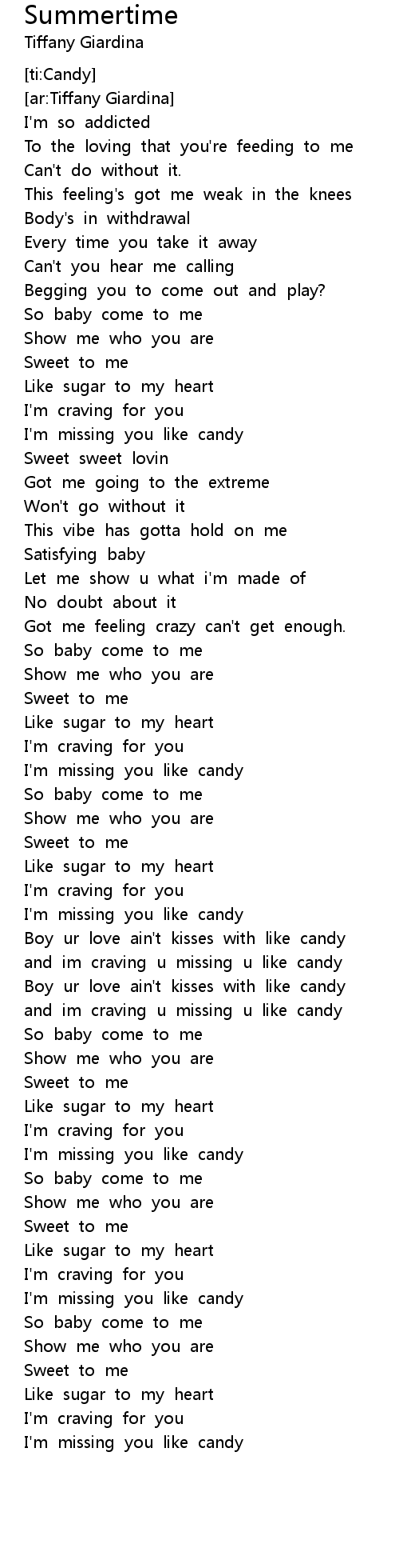 I'm missing you like candy |