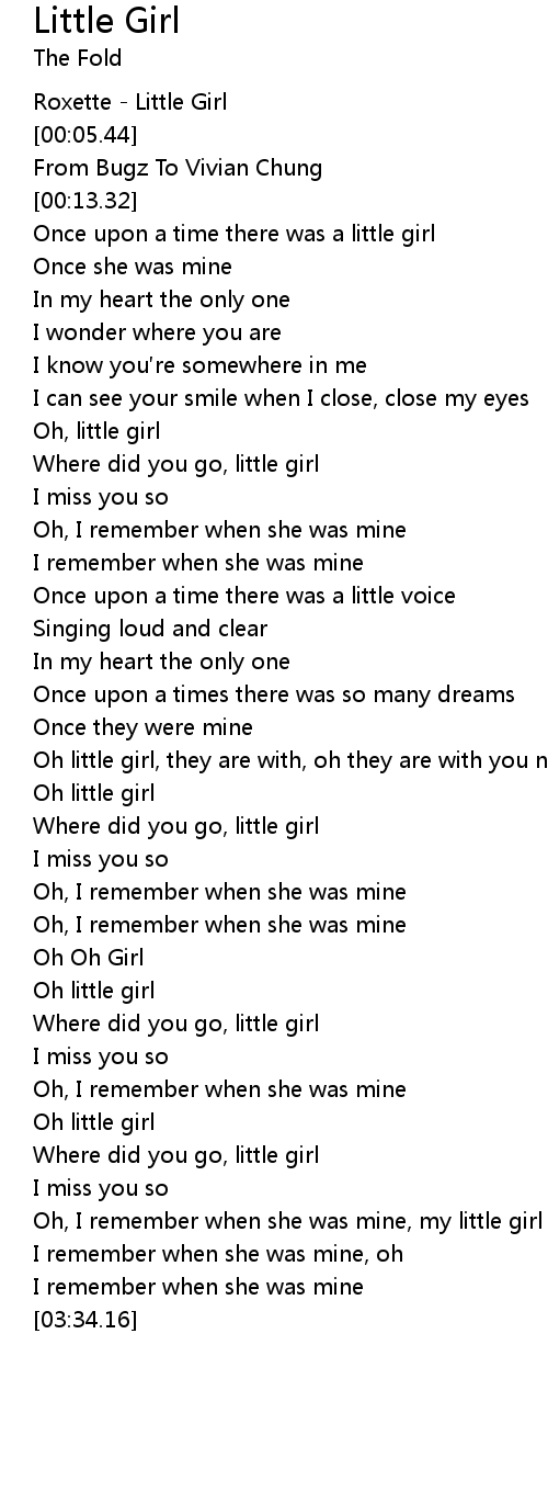 | [03:12.39] | Oh, I remember when she was mine, my little girl |