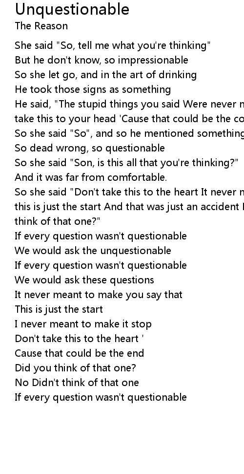 We would ask the unquestionable |