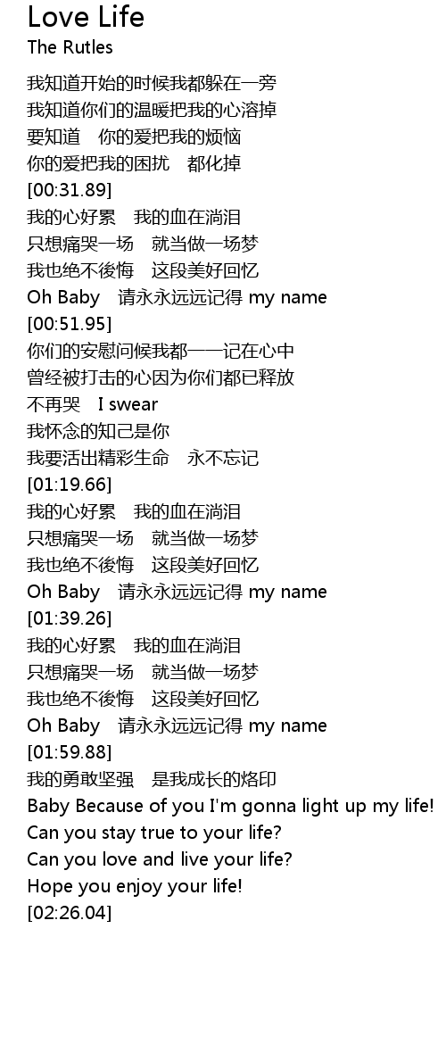 | [00:45.21] | Oh Baby 请永永远远记得 my name |
