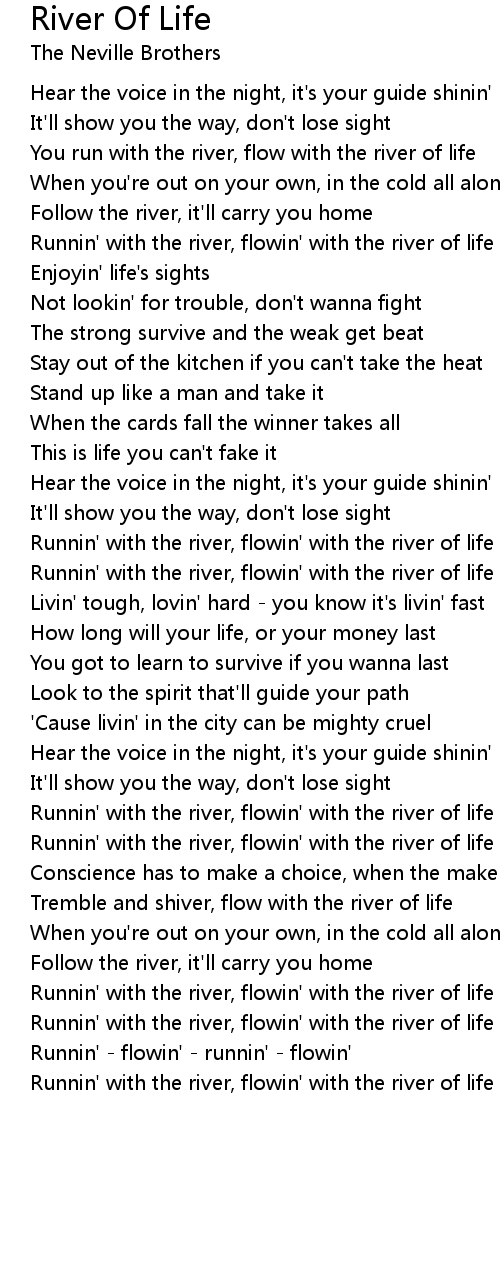 Runnin' with the river, flowin' with the river of life |