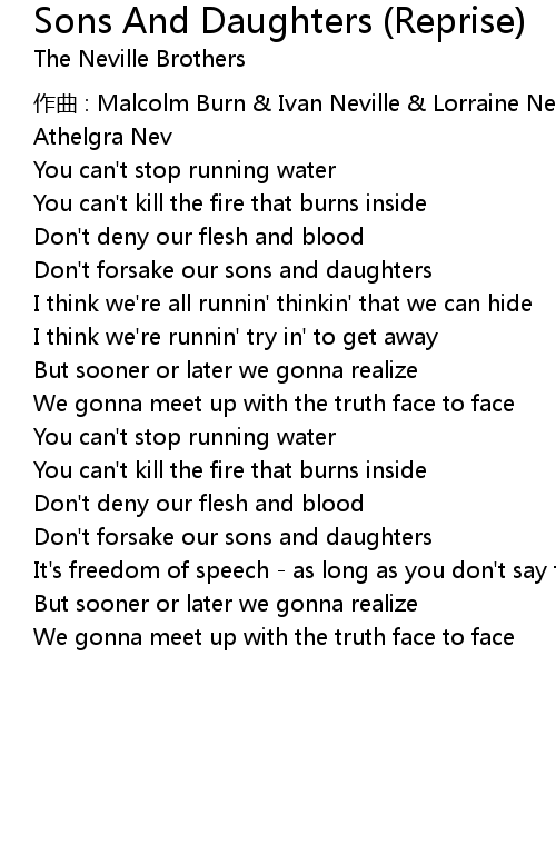 | 作曲 : Malcolm Burn & Ivan Neville & Lorraine Neville & Arthur Neville & Marie Athelgra Nev | |