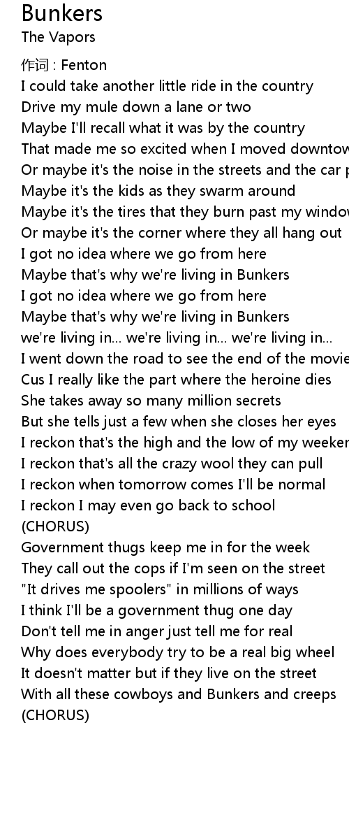 | Maybe that' s why we' re living in Bunkers | |