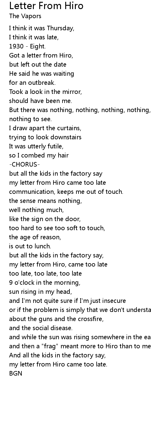 my letter from Hiro, came too late |