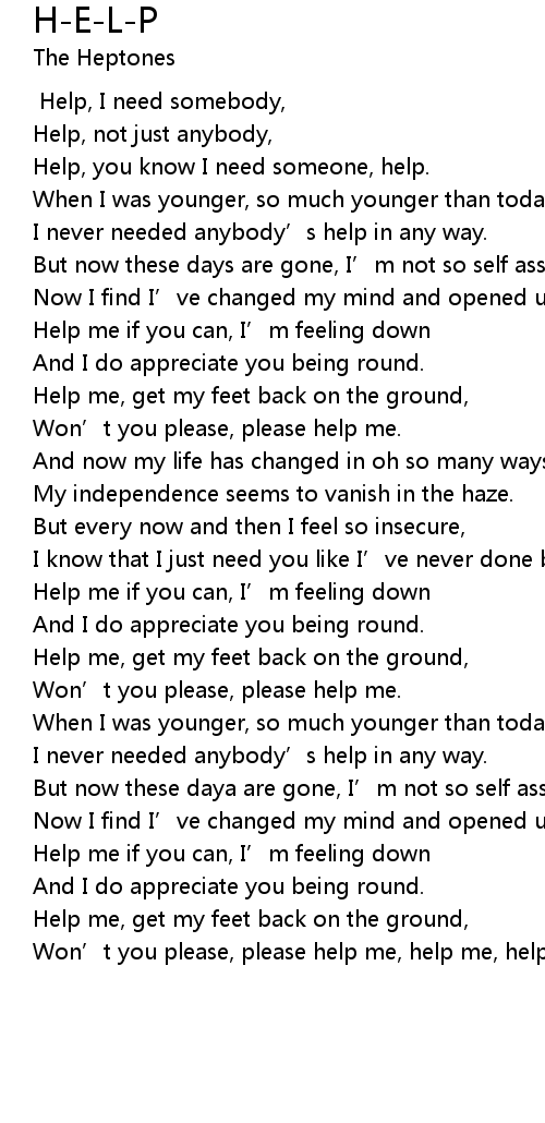 | [00:05.58] | Help, you know I need someone, help. |