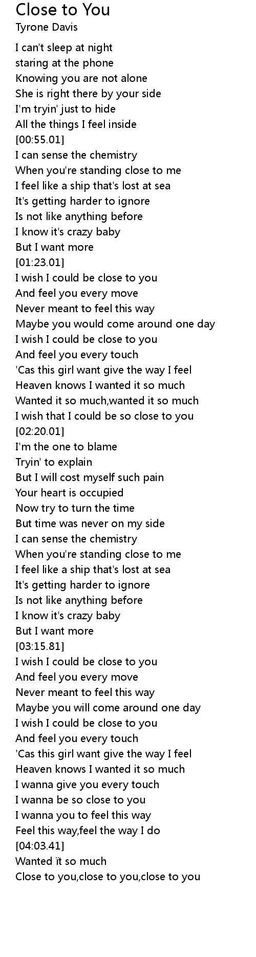 | [01:00.01] | When you're standing close to me |