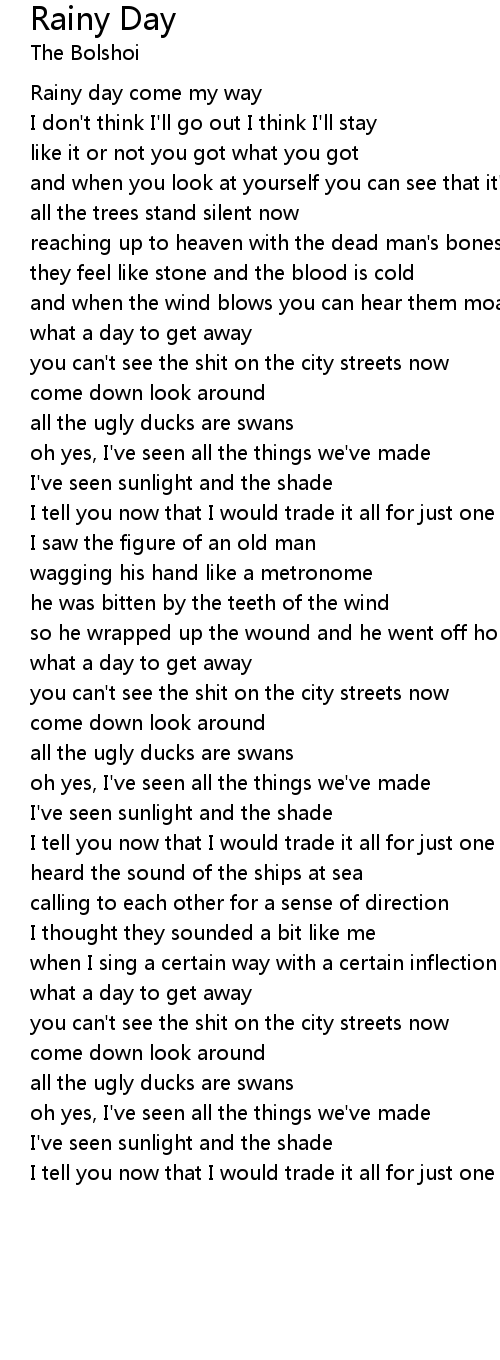 Rainy day come my way |