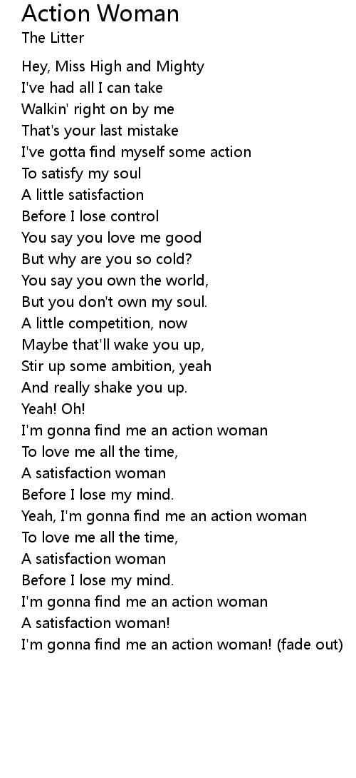 I'm gonna find me an action woman |
