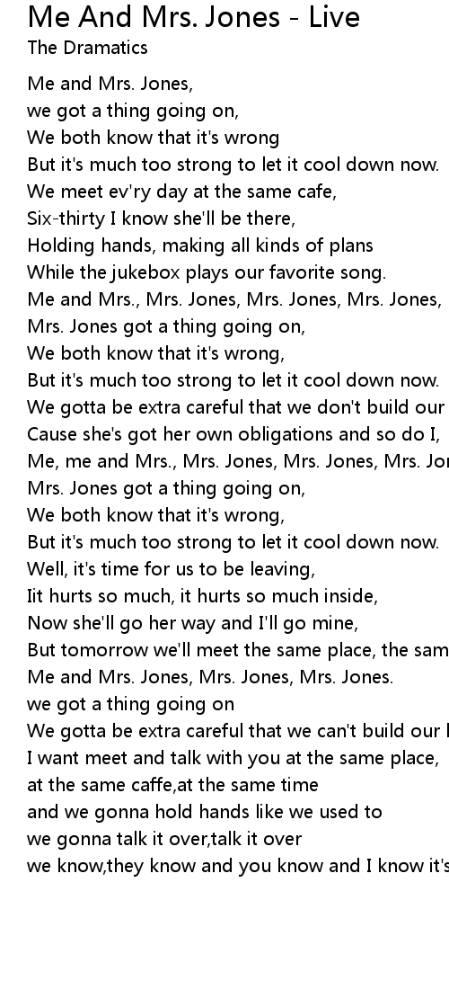 Me and Mrs., Mrs. Jones, Mrs. Jones, Mrs. Jones, |