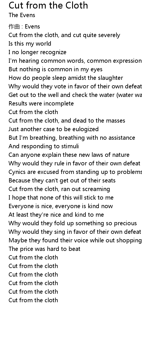 | Cut from the cloth | |