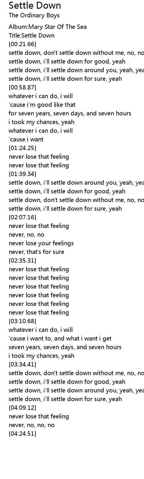 settle down, i'll settle down for good, yeah |