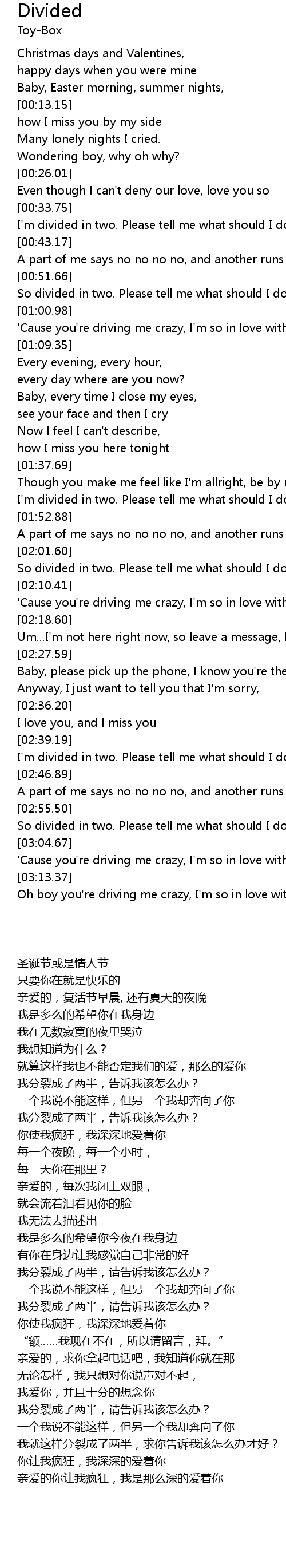 | [02:40.76] | I'm divided in two. Please tell me what should I do? |