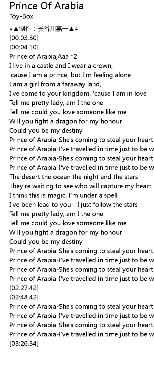 | [03:08.26] | Prince of Arabia-She's coming to steal your heart |