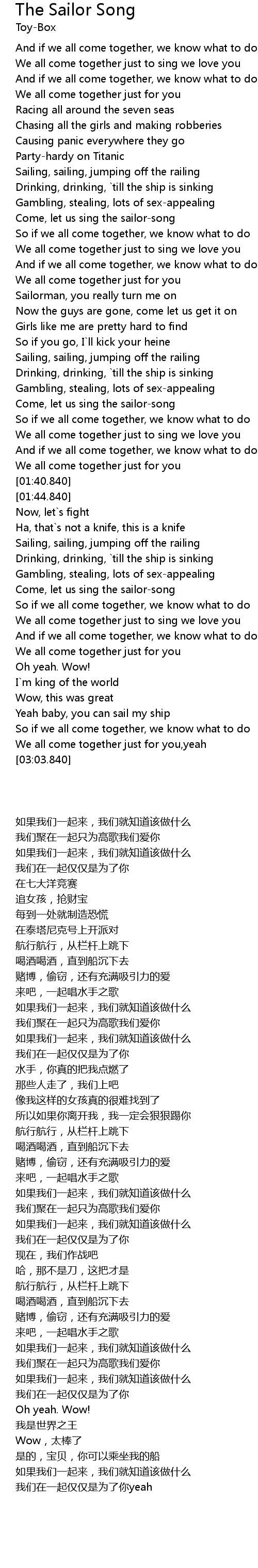 | [00:39.440] | Come, let us sing the sailor-song |