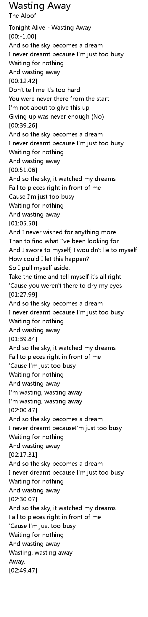 I'm wasting, wasting away |