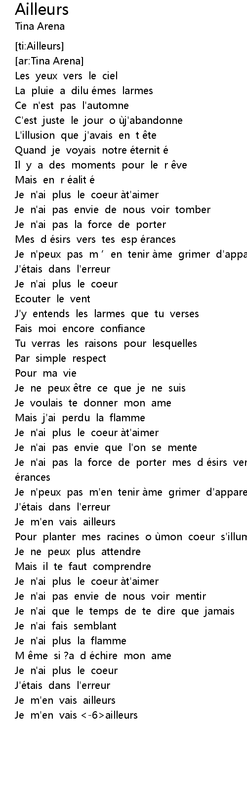 | [03:35.74] | Je m'en vais <-6>ailleurs |