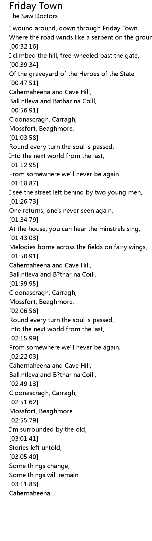 I wound around, down through Friday Town, |