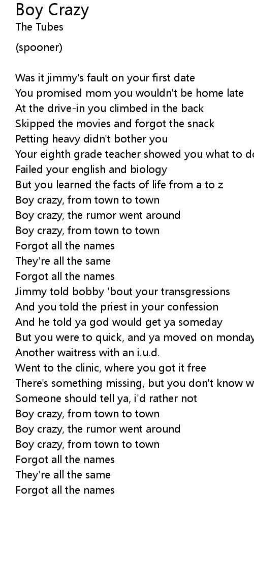 | Boy crazy, the rumor went around | |