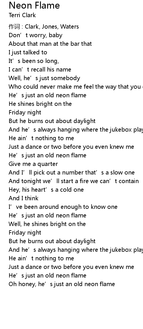 | Oh honey, he' s just an old neon flame |