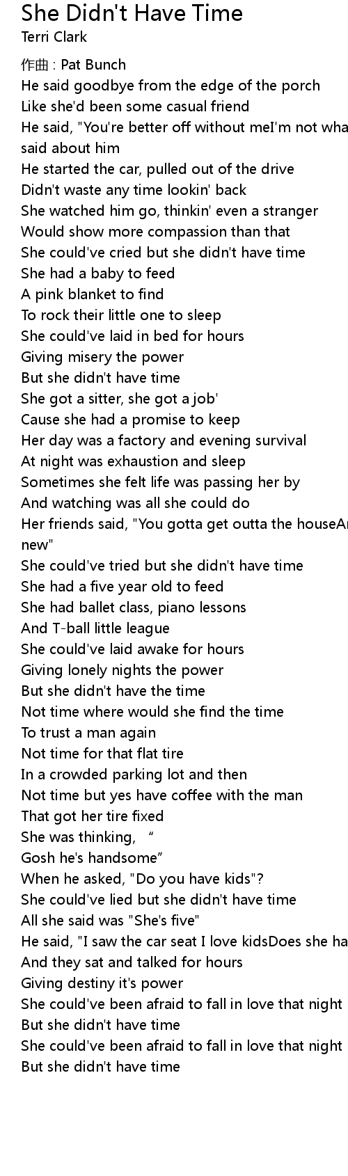 | Song | She Didn't Have Time |