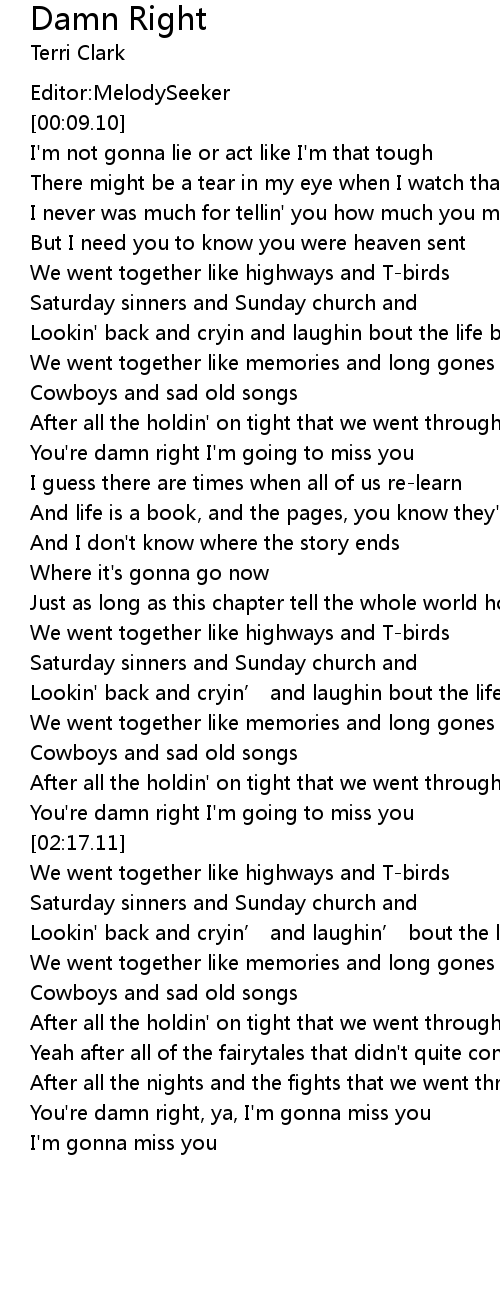 | [00:43.13] | We went together like highways and T-birds |
