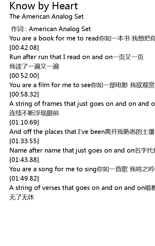 | [00:45.20] | Run after run that I read on and on yī yè yòu yī yè wǒ dú le yī biàn yòu yī biàn |