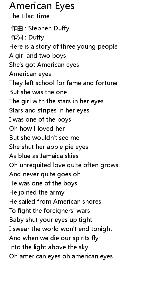 | [02:03.78] | Oh american eyes oh american eyes |