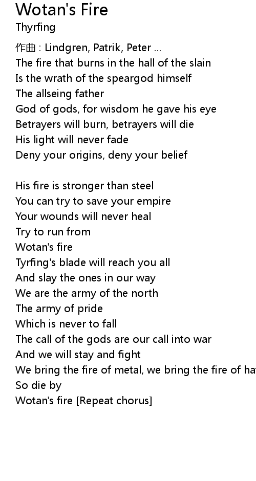 | Wotan's fire [Repeat chorus] |