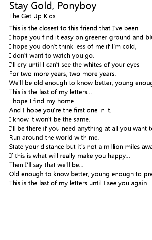 | Song | Stay Gold, Ponyboy |