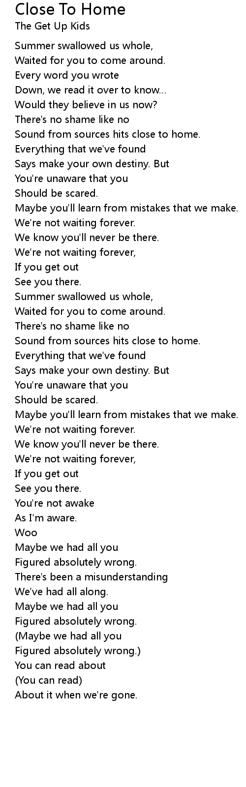 | Song | Close To Home |