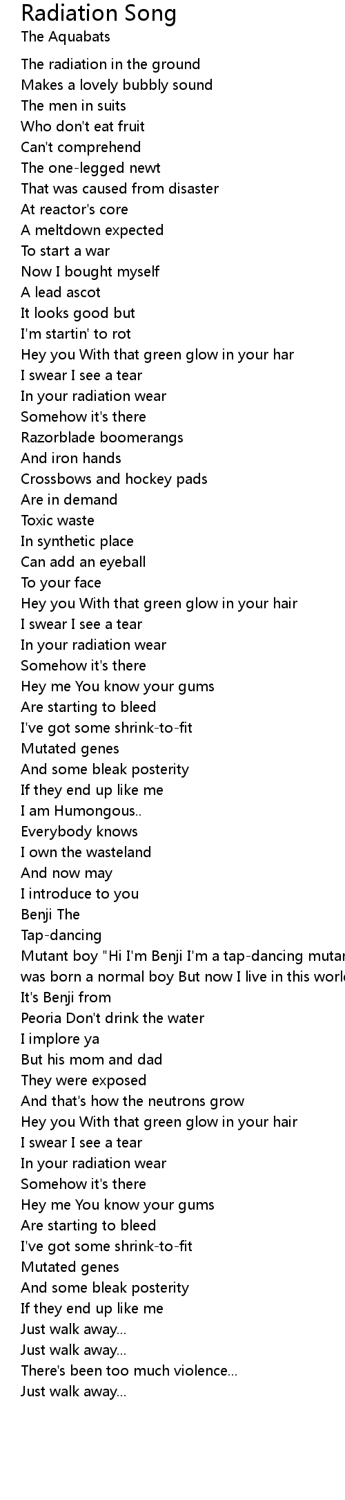 Mutant boy "Hi I'm Benji I'm a tap-dancing mutant I wasn't always like this I was born a normal boy But now I live in this world of joy!" |
