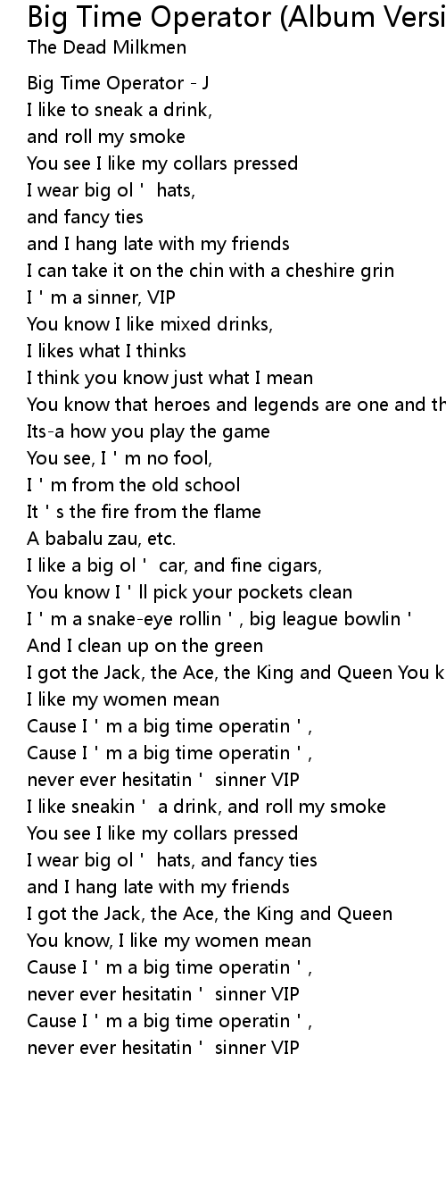 | Song | Big Time Operator (Album Version) |