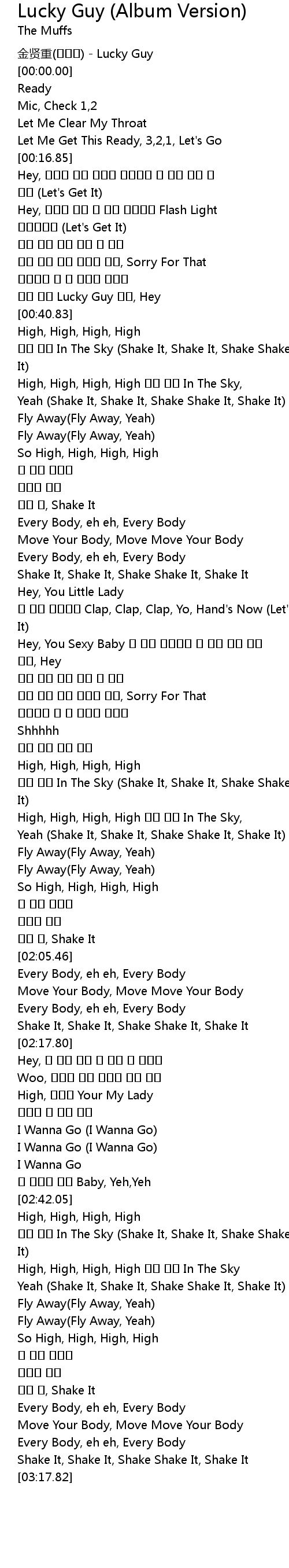 | [02:43.26] | 모두 뛰어 In The Sky (Shake It, Shake It, Shake Shake It, Shake It) |