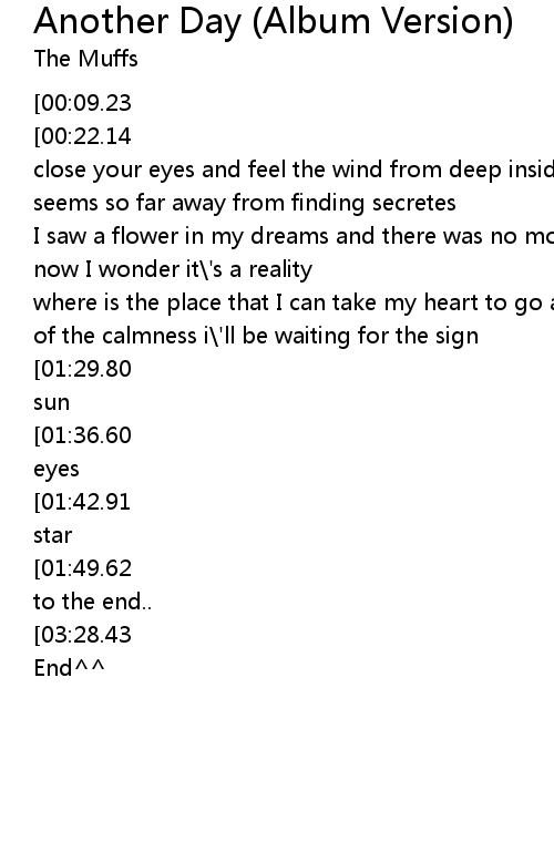 | [03:02.74][01:29.80] | heart will go another day and tell your soul to be blazing sun |