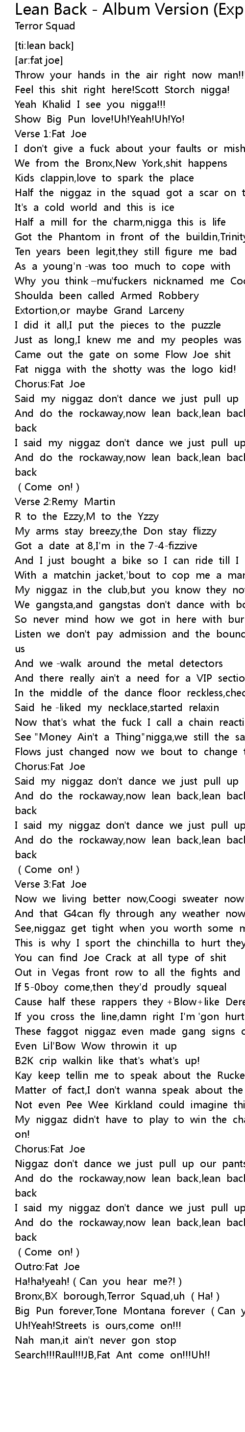 | Song | Lean Back - Album Version (Explicit) |