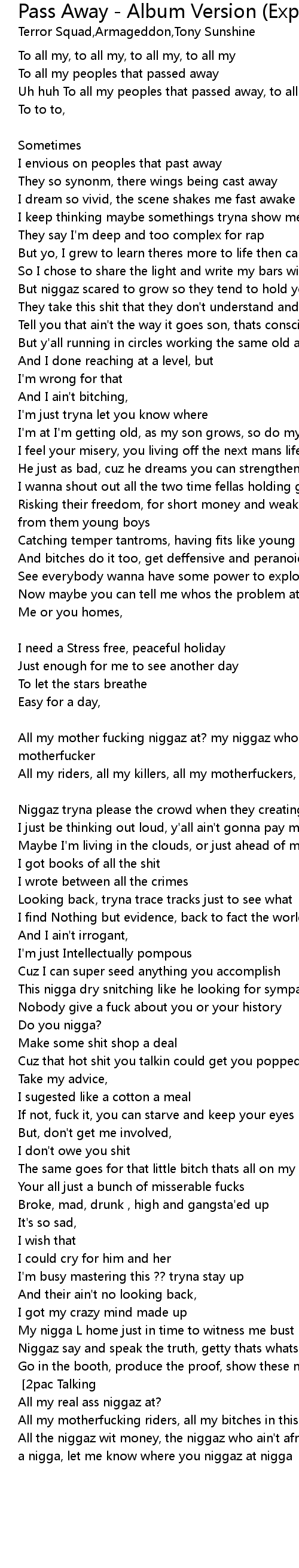 Pass Away - Album Version (Explicit) Lyrics