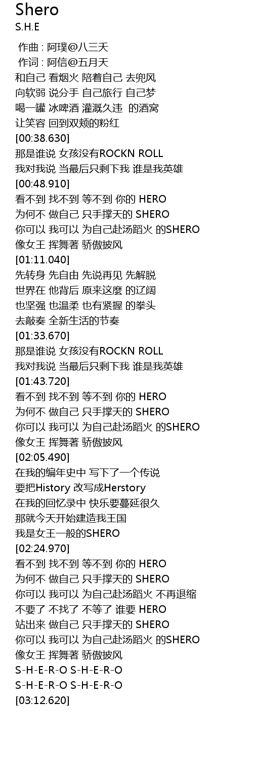 | [02:48.060] | 站出来 做自己 只手撑天的 SHERO |