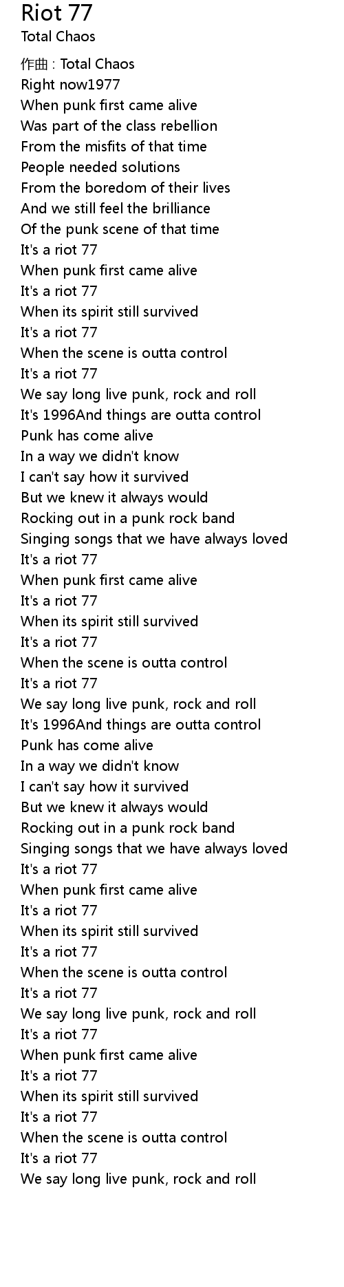 | Song | Riot 77 |