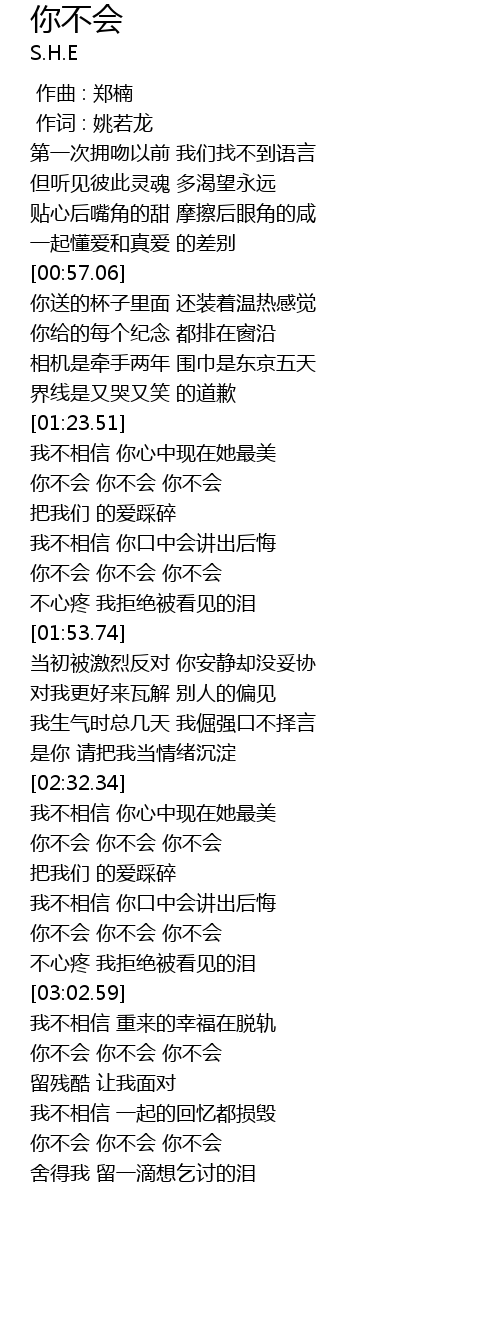 | [03:47.59] | 你不会 你不会 你不会 |