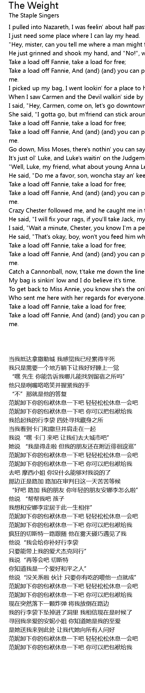 The Weight Lyrics